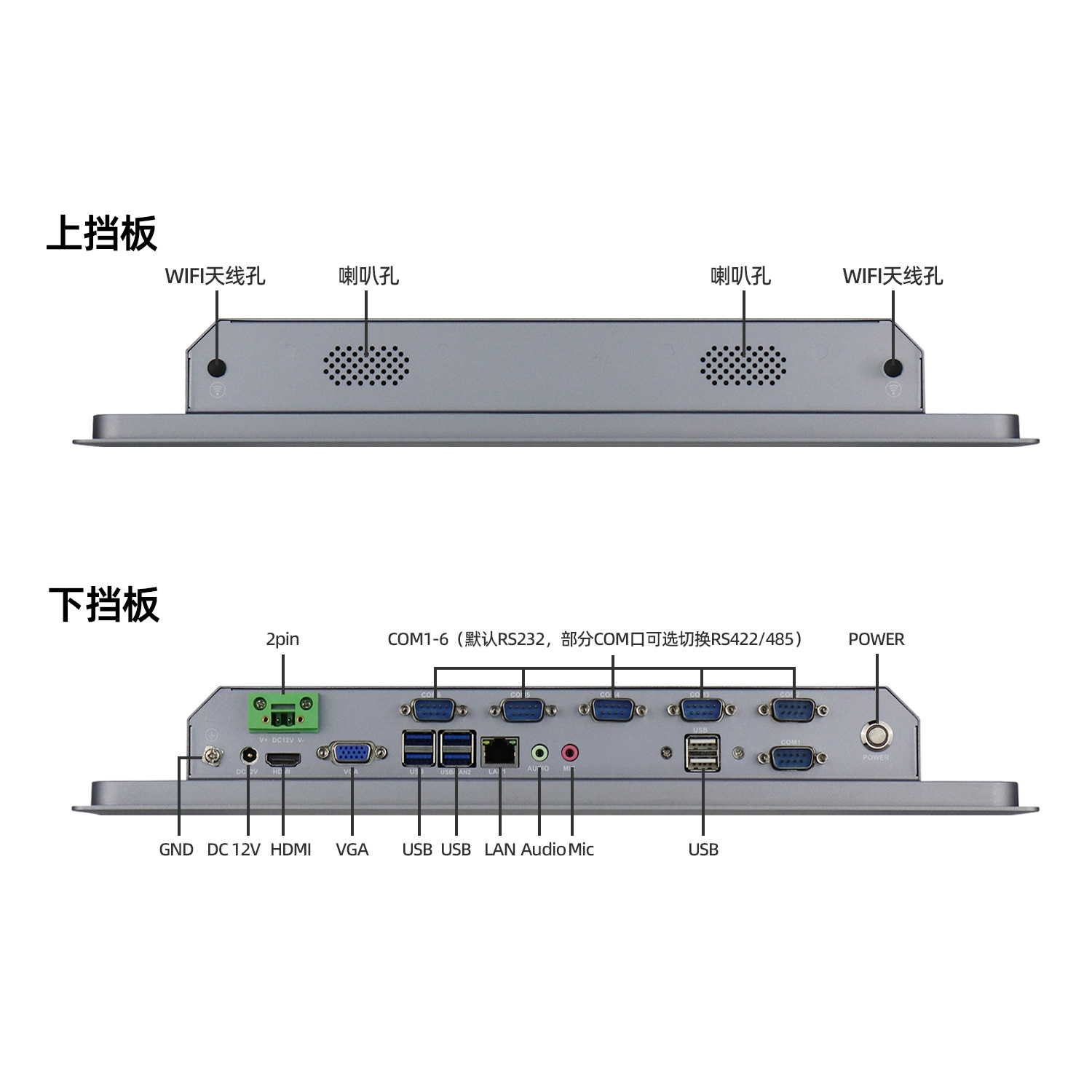 SCP-D1215WR/WZ铝合金工业平板电脑搭载intel Celeron/Core处理器,数据存储支持mSATA、M.2、2.5寸SATA,丰富的COM(RS232/422/485)、USB、LAN等接口齐全,可扩展WIFI蓝牙或4G模块,可选防振缓冲防水胶条更好的防止水分渗入箱体,在工业领域和嵌入设备中得到了广泛的应用,还配备HDMI或VGA视频输出用于扩展显示,支持Windows和Linux系统。